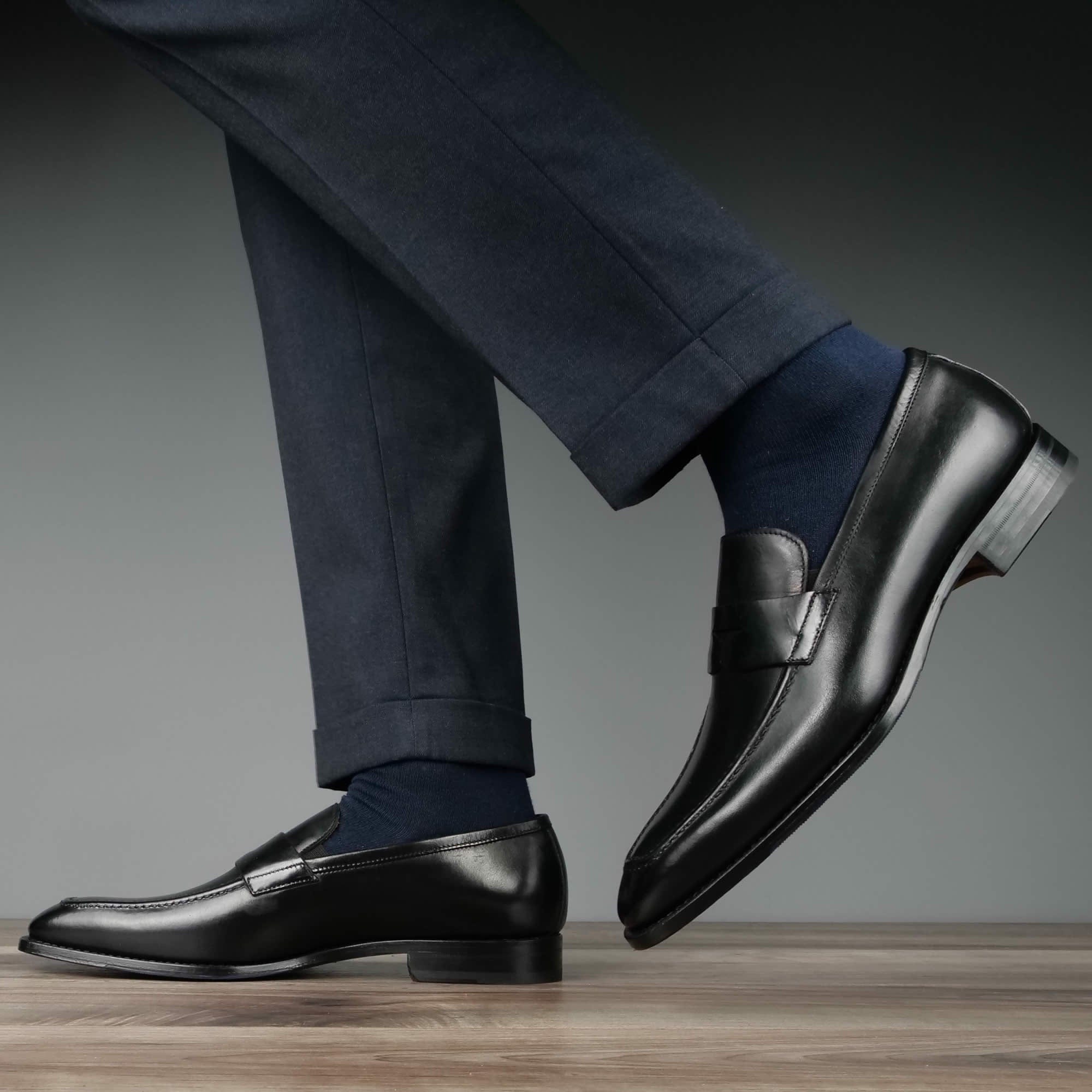 Crafted from premium leather, these black slip-on loafers combine sophisticated style with exceptional comfort. The streamlined silhouette offers effortless versatility for both formal and casual settings. Featuring durable construction and a cushioned footbed, these loafers deliver lasting comfort throughout extended wear.
